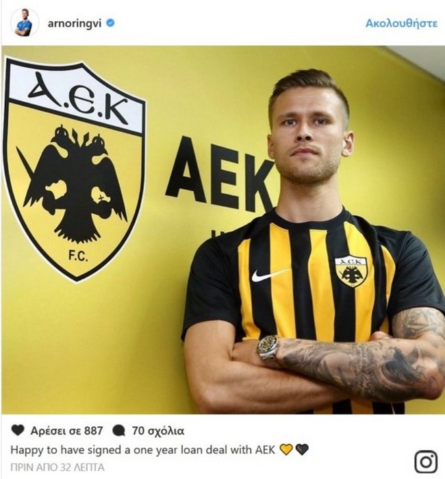 Ο Ισλανδός έκανε την πρώτη ανάρτηση του στα social media με τη φανέλα της Ένωσης.