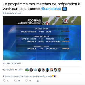 Σε κάθε περίπτωση, η απάντηση για το τι θα συμβεί τελικά εκείνη τη μέρα, την Τετάρτη 12 Ιουλίου, έρχεται από το γαλλικό κανάλι Canal+ το οποίο έχει συμπεριλάβει στο πρόγραμμά του φιλικό της Μαρσέιγ με τον Ολυμπιακό στις 20:00 αυτή της ημέρας.
