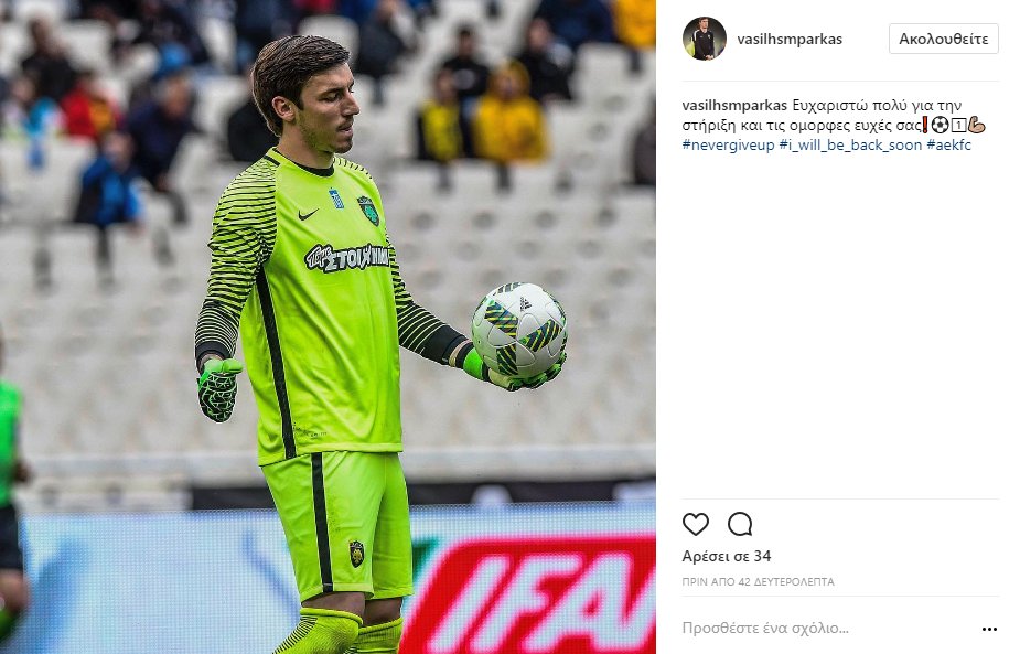 Ο Έλληνας τερματοφύλακας έστειλε το δικό του μήνυμα μέσω τον social media για όσους τον στηρίζουν. Ο Βασίλης Μπάρκας έγραψε: «Ευχαριστώ πολύ για την στήριξη και τις όμορφες ευχές σας. Μη τα παρατάς ποτέ. Θα επιστρέψω σύντομα».