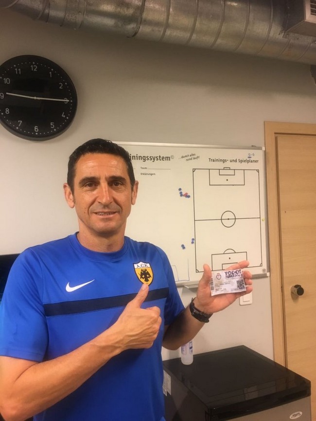 Ο Ισπανός τεχνικός έκλεισε την καριέρα του ως ποδοσφαιριστής στη Ρεάλ Χαέν και φωτογραφήθηκε με το διαρκείας της ομάδας, δείχνοντας τη στήριξη του.