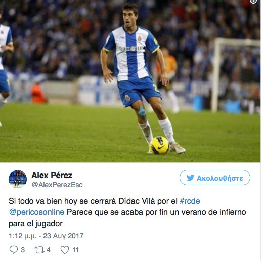 Σύμφωνα με τον Άλεξ Πέρες, Ισπανό δημοσιογράφο η μεταγραφή του στην Εσπανιόλ, ίσως τελειώσει και σήμερα. Συγκεκριμένα σε ανάρτηση στο twitter έγραψε: «Αν όλα πάνε καλά σήμερα ο Ντιντάκ Βιλά θα κλείσει στην Εσπανιόλ και φαίνεται να τελειώνει ένα καλοκαίρι κόλασης για τον παίκτη»