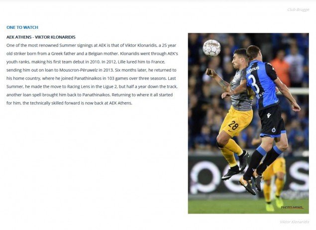 Στην επίσημη σελίδα της Κλαμπ Μπριζ έχει αναρτηθεί άρθρο που αναφέρεται στον Βίκτωρα Κλωναρίδη.