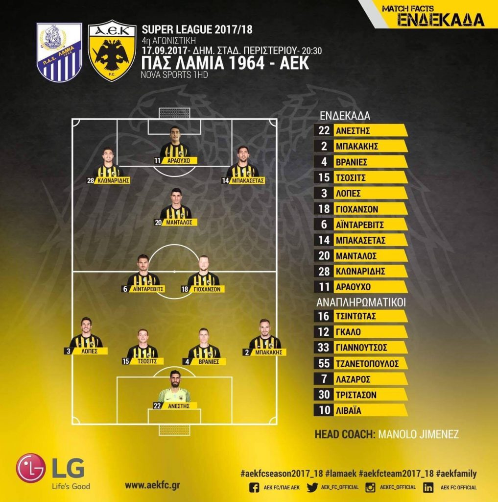 Η “11” του Μανόλο Χιμένεθ είναι: Ανέστης, Μπακάκης, Λόπες, Τσόσιτς, Βράνιες, Γιόχανσον, Αϊντάρεβιτς, Μπακασέτας, Μάνταλος, Κλωναρίδης, Αραούχο.