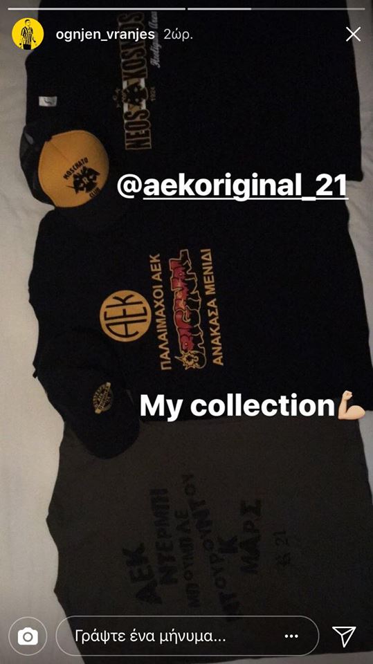 Ο Όγκνιεν Βράνιες έχει αγαπηθεί απ’ τον κόσμο της Ένωσης, για το πάθος και την ενέργεια που βγάζει όταν φοράει την κιτρινόμαυρη φανέλα, ενώ και ο Βόσνιος έχει στην καρδιά του τους οπαδούς της ΑΕΚ και αυτό φαίνεται με τις φωτογραφίες που ανεβάζει κατά διαστήματα στο Instagram.
