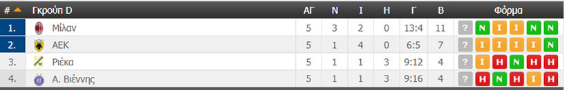Δείτε πως διαμορφώνεται η βαθμολογία για την 5η αγωνιστική του Europa League, έπειτα απ’ τα σημερινά αποτελέσματα και την ισοπαλία της ΑΕΚ με την Ριέκα στο ΟΑΚΑ.