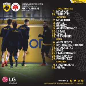Μετά το τέλος της προπόνησης, ο Μανόλο Χιμένεθ επέλεξε 18 ποδοσφαιριστές για τον αγώνα με τον Πλατανιά στο ΟΑΚΑ τη Δευτέρα 27 Νοεμβρίου (19.30) για την 12η αγωνιστική της Super League 2017-18.