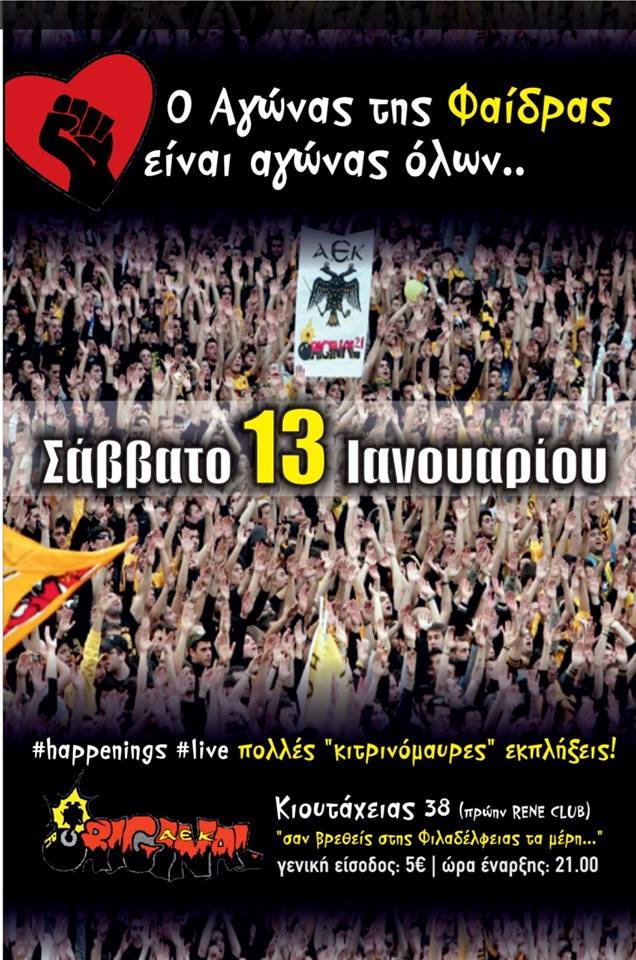 ΥΓ. Ο αγώνας αυτός δεν έχει χρώματα, δεν έχει διακρίσεις. ΝΙΚΗΤΗΣ είναι μονο η ΦΑΙΔΡΑ μας !