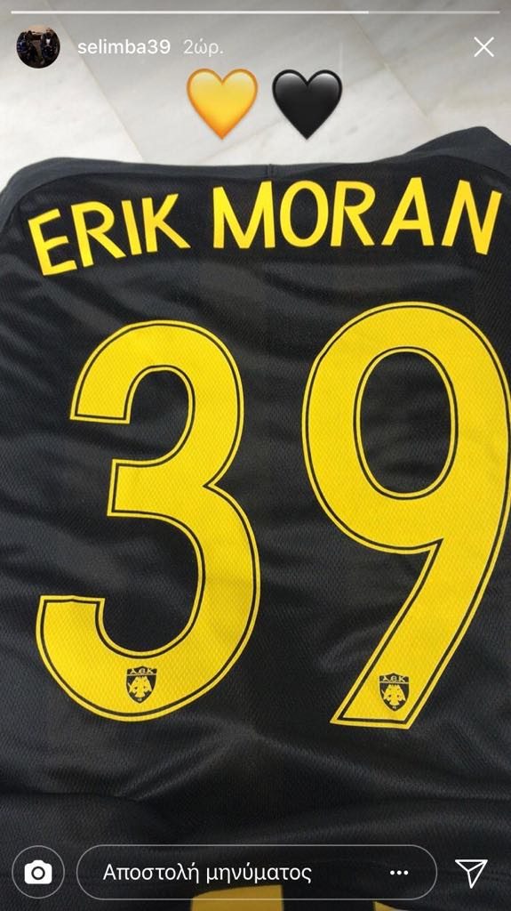 Έρωτας με την πρώτη ματιά …φαίνεται πως θα είναι η ΑΕΚ για τον Έρικ Μοράν, ο οποίος ανέβασε στα social media την φανέλα του με το «39» και «κιτρινόμαυρες» καρδούλες.