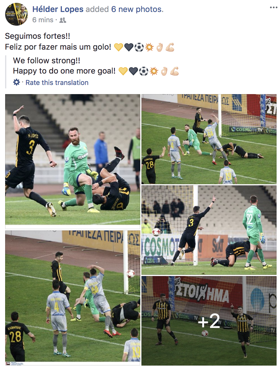 «Συνεχίζουμε δυνατά – Χαρούμενος για το γκολ», έγραψε ο Έλντερ Λόπες στα Social Media ανεβάζοντας τις παρακάτω φωτογραφίες από την σημερινή αναμέτρηση στο ΟΑΚΑ.