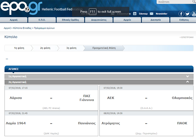 Συγκεκριμένα το ΑΕΚ – Ολυμπιακός αναμένεται να πραγματοποιηθεί την Τετάρτη 7 Φεβρουαρίου στις 19:30.