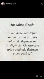 «Ένας σοφός έγραψε: η ηλικία σου δεν προσδιορίζει την ωριμότητά τους. Οι ικανότητές σου δεν ορίζουν την εξυπνάπαδα σου. Οι φήμες για σένα δεν προσδιορίζουν ποιος είσαι» έγραψε ο Νείμάρ και όποιος κατάλαβε…