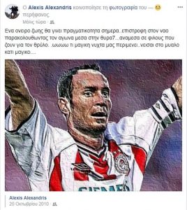 Το όνειρο ζωής του Αλέκου. Ο Αλέκος Αλεξανδρής ανακοίνωσε με ανάρτηση στο facebook πως θα παρευρεθεί στο γήπεδο «Καραϊσκάκης» για να δει από κοντά τον αγώνα Ολυμπιακός – ΑΕΚ.