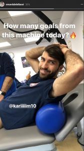 Ο μπακ του Ολυμπιακού ανέβασε φωτογραφία του συμπαίκτη του Καρίμ Ανσαριφάρντ γράφοντας ως λεζάντα: «Πόσα γκολ θα πετύχει αυτή η μηχανή σήμερα;»