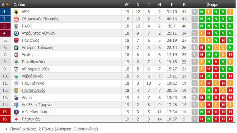 Δείτε πως διαμορφώνεται η βαθμολογία για την 19η αγωνιστική της Super League ΣΟΥΡΩΤΗ