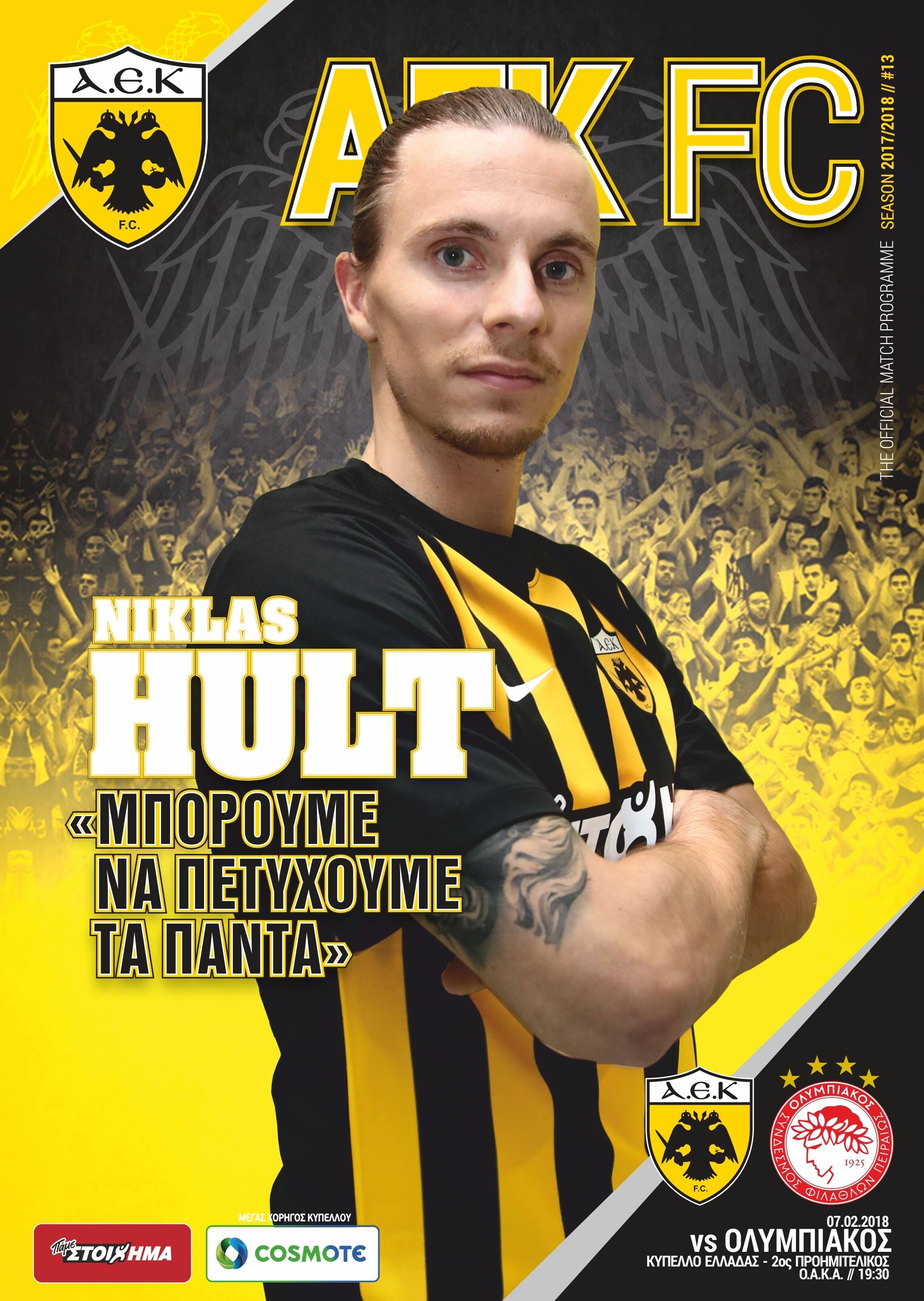 Το σημερινό match programme «φιλοξενεί» συνέντευξη του Νίκλας Χούλτ. Ο παίκτης αποτέλεσε την τρίτη και τελευταία μεταγραφή της ΑΕΚ στην περίοδο του Ιανουαρίου υπογράφοντας την τελευταία μέρα προκειμένου να αποτελέσει ένα ακόμα πολύτιμο όπλο στη φαρέτρα του Μανόλο Χιμένεθ για το δεύτερο μισό της περιόδου.