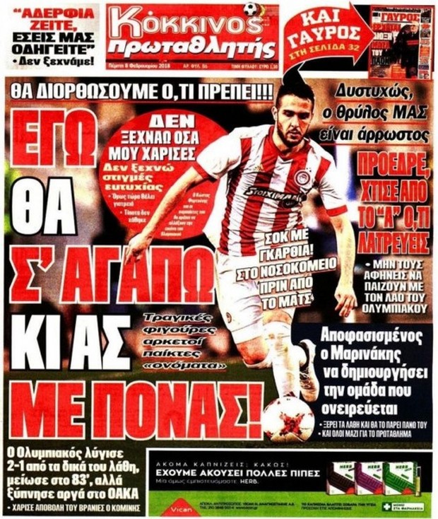 Η ΑΕΚ τους πονάει και το παραδέχονται πλέον χωρίς… ταμπού. «Εγώ θα σ’ αγαπώ κι ας με πονάς!» είναι ο τίτλος ερυθρόλευκης εφημερίδας. Το «Σύνδρομο της Στοκχόλμης» έχουν πάθει στον Πειραιά.