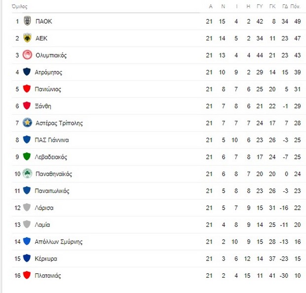 Αποτελέσματα 21ης αγωνιστικής