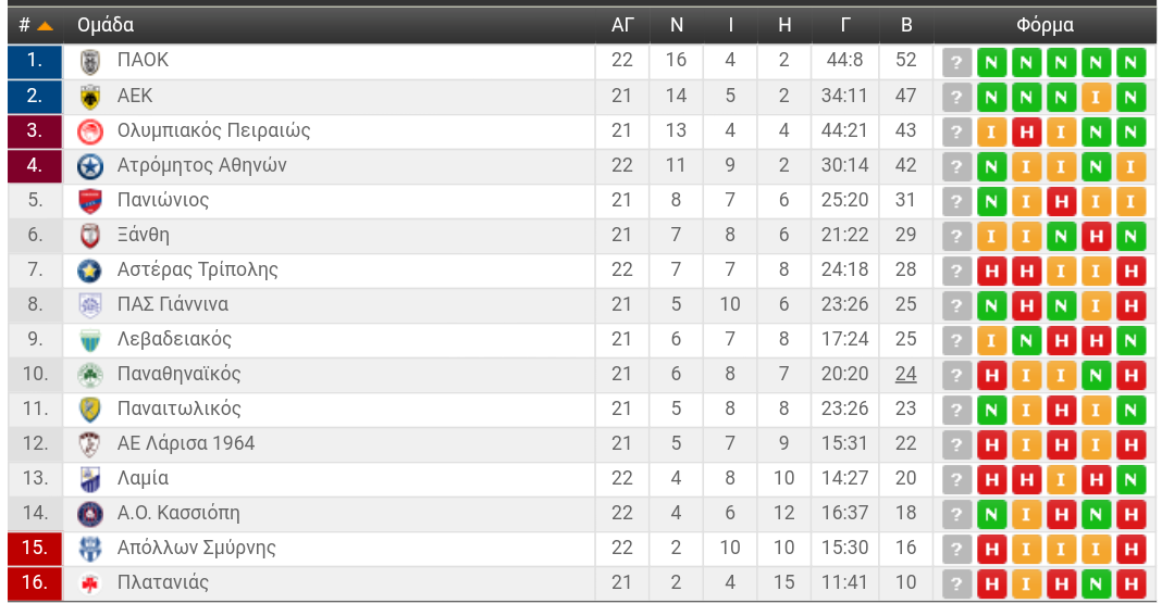 Η σημερινή μέρα του πρωταθλήματος ολοκληρώθηκε με την νίκη του ΠΑΟΚ επί της Λαμίας που τον διατηρεί στην πρώτη θέση του πρωταθλήματος. Νωρίτερα ο Ατρόμητος πήρε μεγάλο διπλό στην Τρίπολη και η Κέρκυρα κέρδισε τον Απόλλωνα στο ντέρμπι «σωτηρίας».