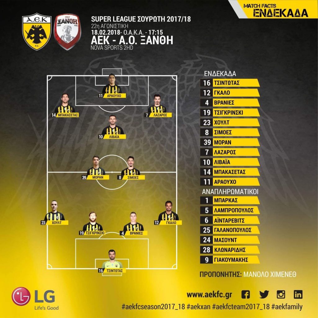 Με τους γνωστούς άγνωστους θα αγωνιστεί η ΑΕΚ κόντρα στην Ξάνθη, με τον Νίκλας Χουλτ να επιστρέφει στην ενδεκάδα και τον Έρικ Μοράν στο πλάι του Αντρέ Σιμόες.