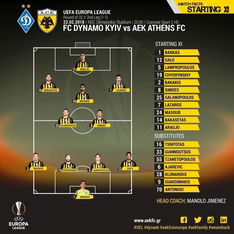 Με 4-2-3-1 θα παραταχθεί απόψε η ΑΕΚ απέναντι από την Ντιναμό Κιέβου για την μεγάλη αναμέτρηση που θα κρίνει την πρόκριση στη φάση των «16» του Europa League.