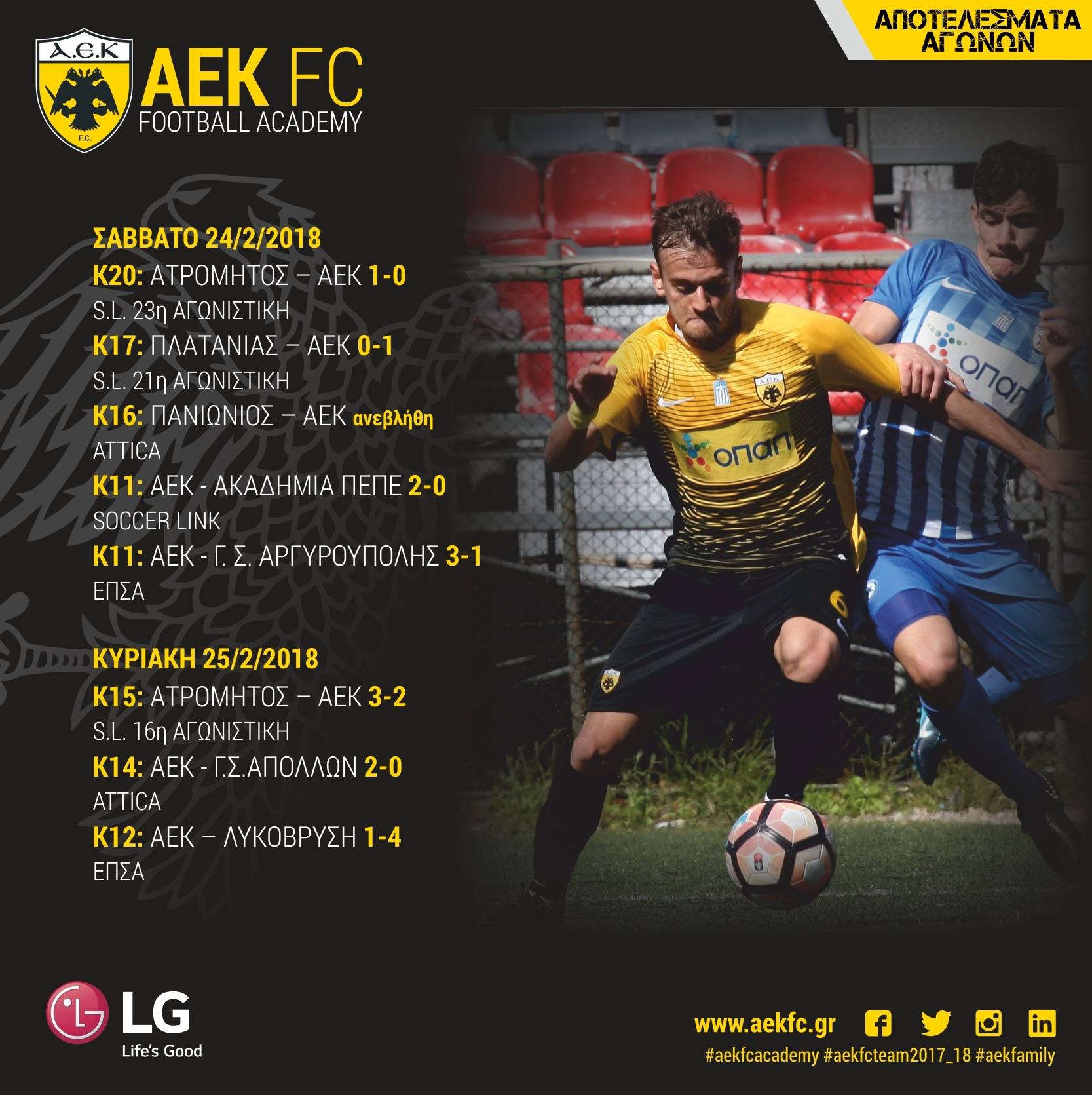 Δείτε στο παρακάτω γράφημα όλα τα αποτελέσματα από τα τμήματα υποδομής της ΑΕΚ