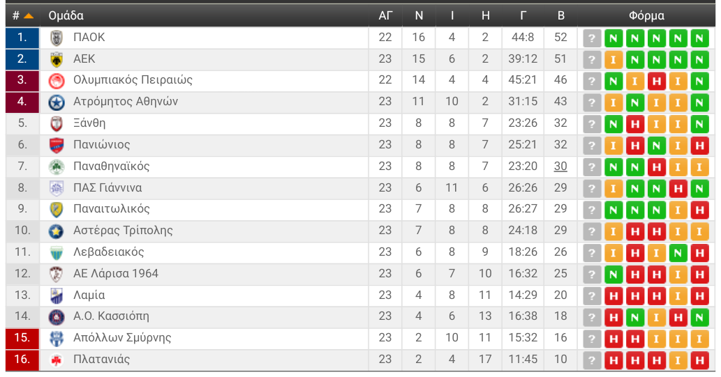 Ολοκληρώθηκε η αγωνιστική δράση της 23ης αγωνιστικής του πρωταθλήματος με το ισόπαλο 1-1 της ΑΕΚ με τον Ατρόμητο.
