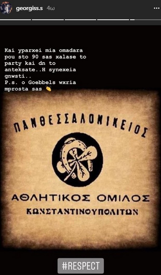 ΥΓ: Ο Γκέμπελς ωχριά μπροστά σας», έγραψε στο Instagram ο αντιπρόεδρος της ΠΑΕ ΠΑΟΚ και γιος του Ιβάν Σαββίδη.