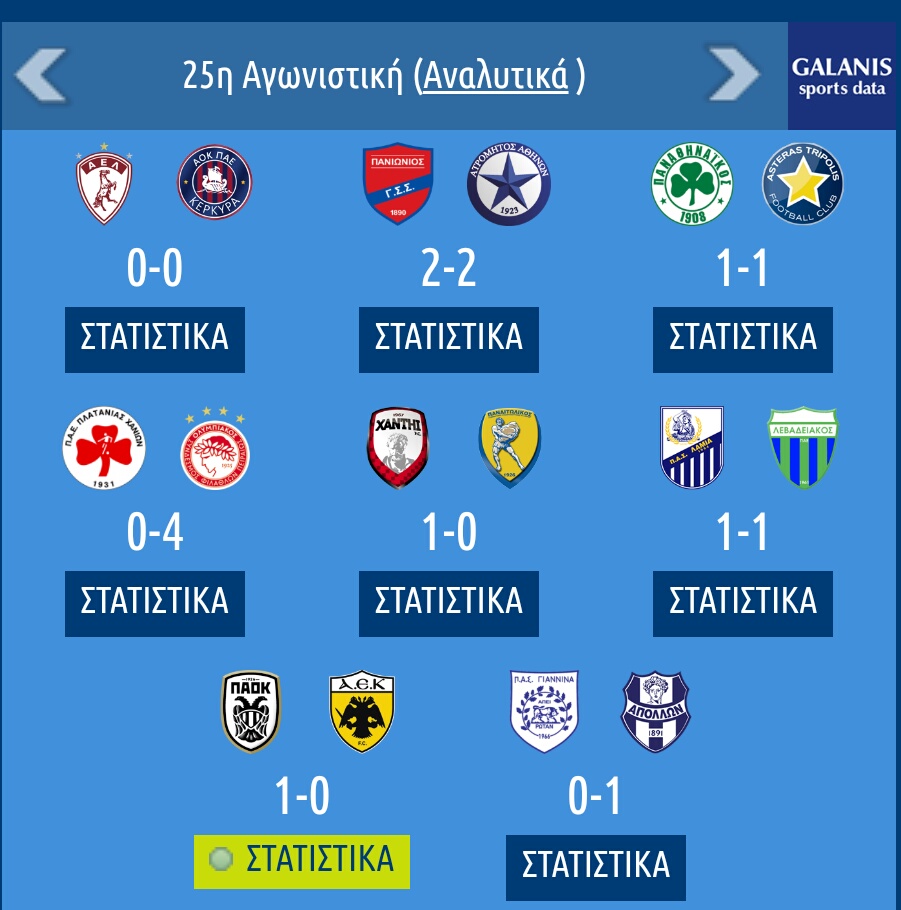 Στο επίσημο site της Super League και συγκεκριμένα στην λίστα με τους αγώνες κάθε αγωνιστικής, το ΠΑΟΚ-ΑΕΚ φαίνεται να εξελίσσεται ακόμα με τον ΠΑΟΚ να προηγείται με 1-0!
