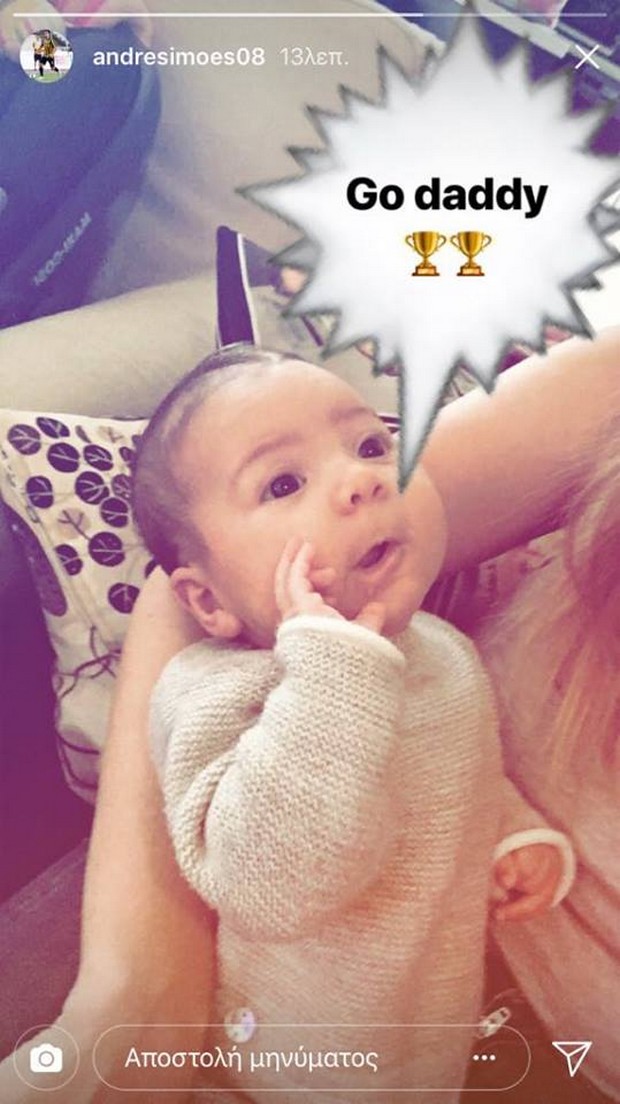 Ο Σιμόες πόσταρε στο Instagram φωτογραφία με την μικρή να σκέφτεται νταμπλ, γράφοντας “Go Daddy”!