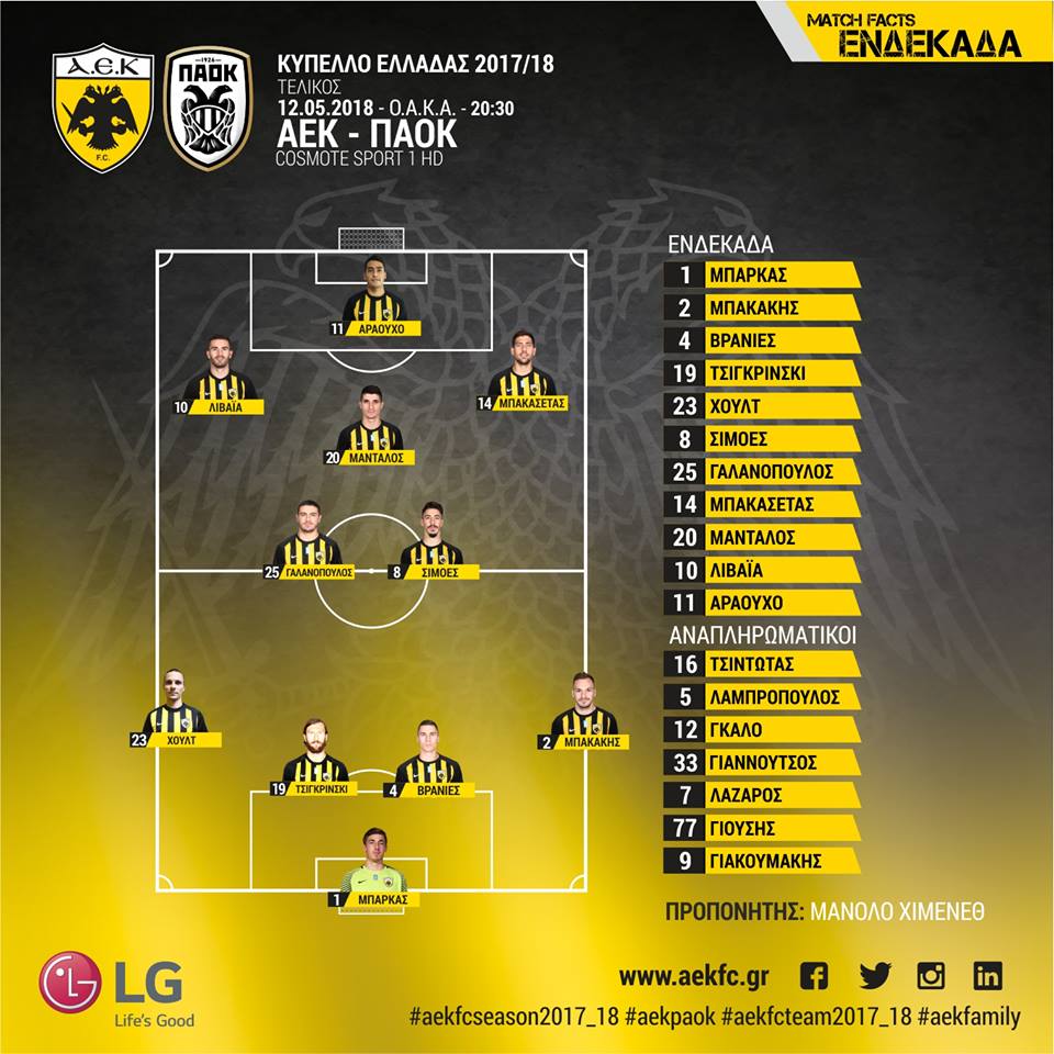 Ο Μανόλο Χιμένεθ επέλεξε τους έντεκα παίκτες του τελικού που θα ιδρώσουν την φανέλα για να κατακτήσουν το Κύπελλο και το νταμπλ, μετά από 4οχρόνια.