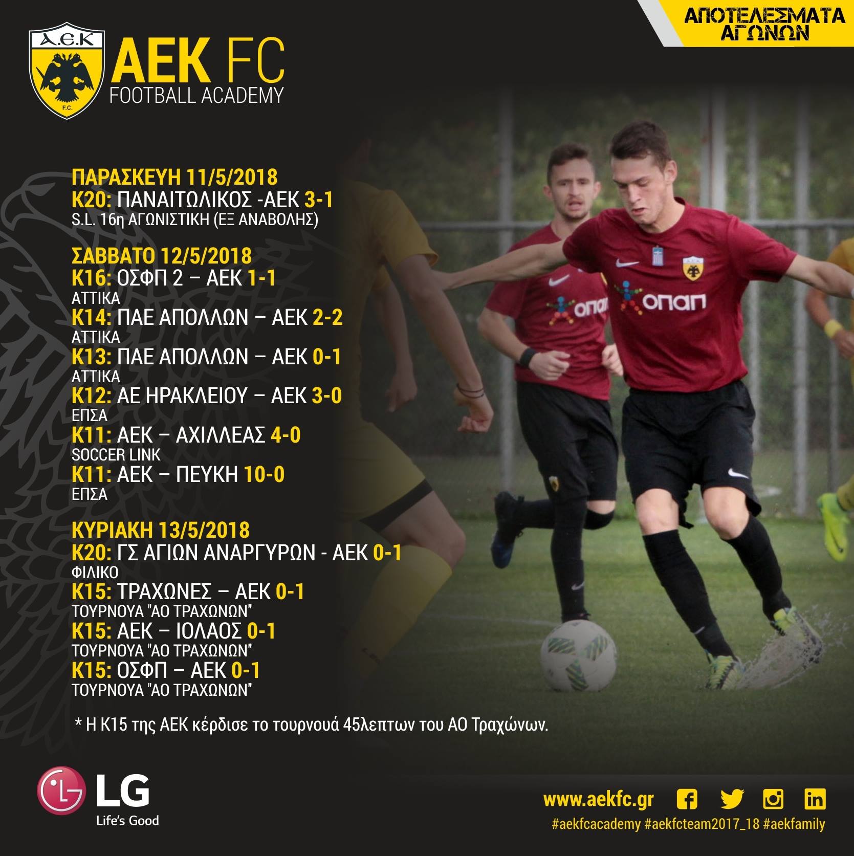 Τα αποτελέσματα των ομάδων των τμημάτων υποδομής της ΑΕΚ