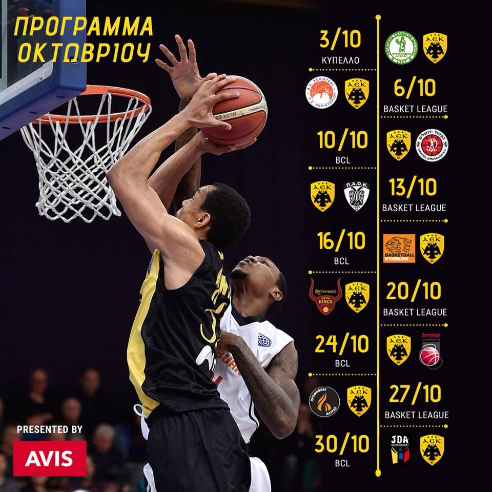 Δείτε το πρόγραμμα της ΑΕΚ για τον μήνα Οκτώβριο όπου μεταξύ άλλων περιλαμβάνει αγώνες για το πρωτάθλημα, το κύπελλο αλλά και το Basketball Champions League