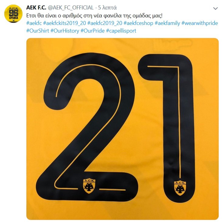 Η ΠΑΕ ΑΕΚ αποκάλυψε με το νούμερο… 21 πως θα είναι ο αριθμός στη νέα φανέλα της Capelli! Χαρακτηριστικό είναι πως στα πλαίσια των αριθμών θα περικλείεται και το έμβλημα του συλλόγου.