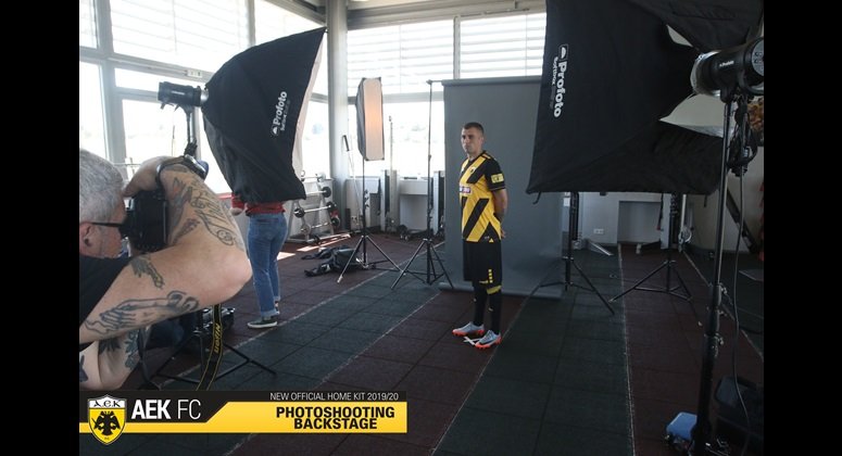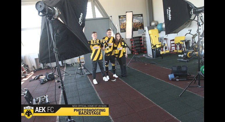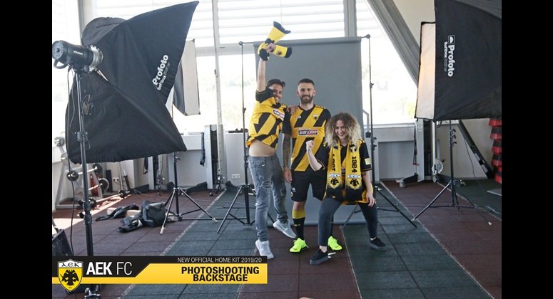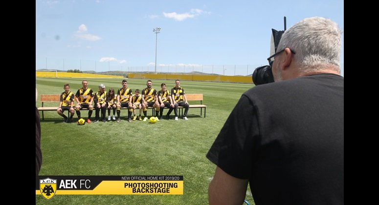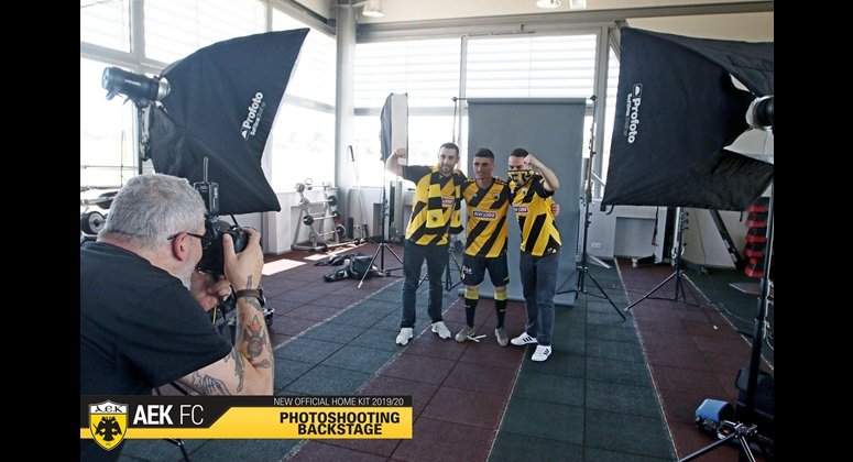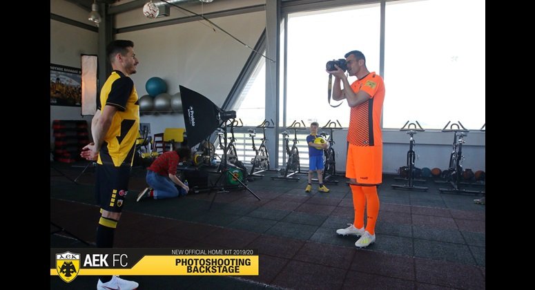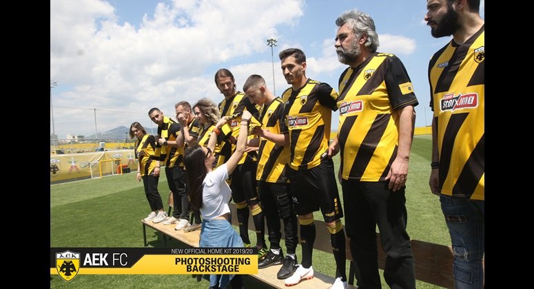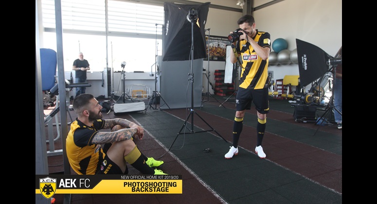 Στα παραδοσιακά χρώματα της ομάδας μας, κίτρινο και μαύρο, με ιδιαίτερο σχεδιασμό και διαγώνιες ρίγες φέτος, πάντα με τον Δικέφαλο Αετό σε πρώτο πλάνο και την τεχνογνωσία της αμερικανικής εταιρίας Capelli Sport, η φωτογράφιση της πρώτης φανέλας της ΑΕΚ για τη σεζόν 2019-20 έφερε ακόμα πιο κοντά τους ποδοσφαιριστές και τους φιλάθλους της ομάδας στο προπονητικό κέντρο των Σπάτων.