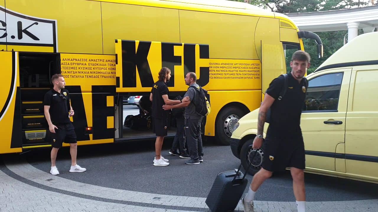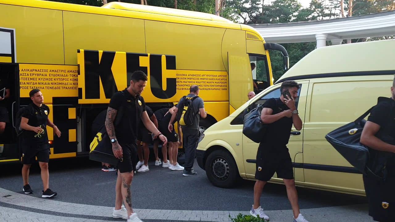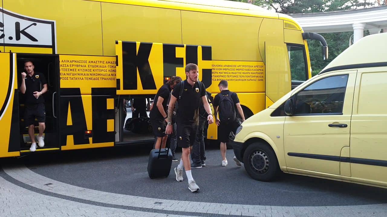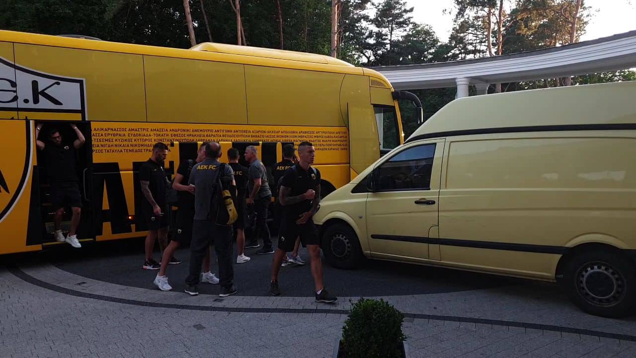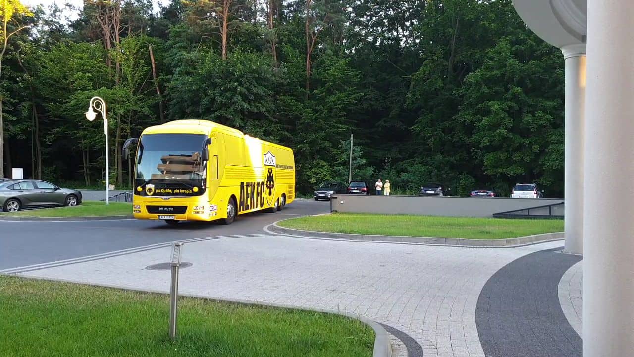 Το κιτρινόμαυρο πούλμαν μετέφερε την αποστολή στο Κίελτσε από το αεροδρόμιο της Βαρσοβίας, στο Κίελτσε εκεί που θα περάσουν δυο εβδομάδες και θα «χτιστεί» η ΑΕΚ του Μιγκέλ Καρντόσο.