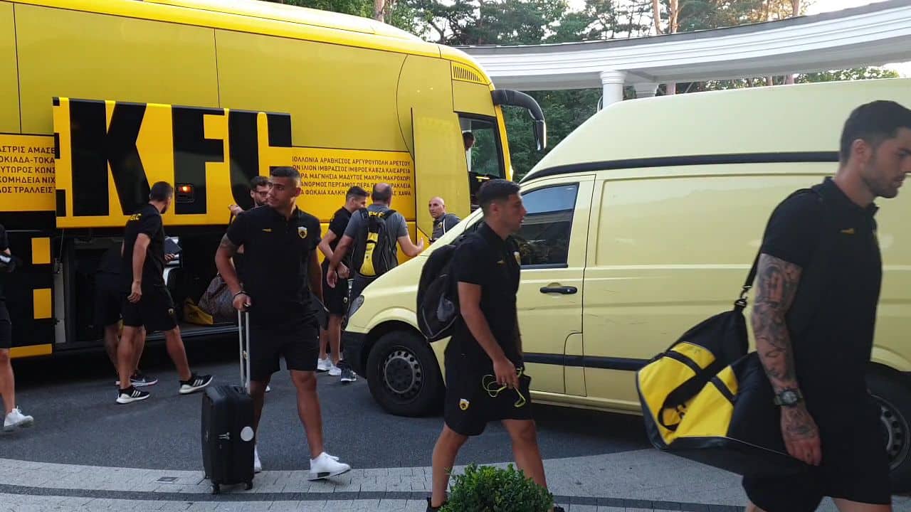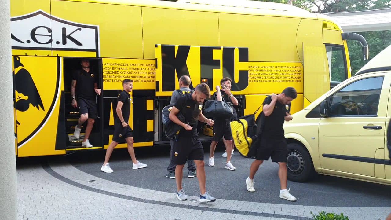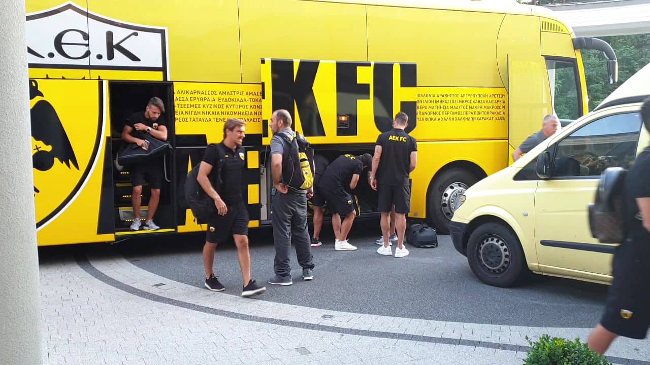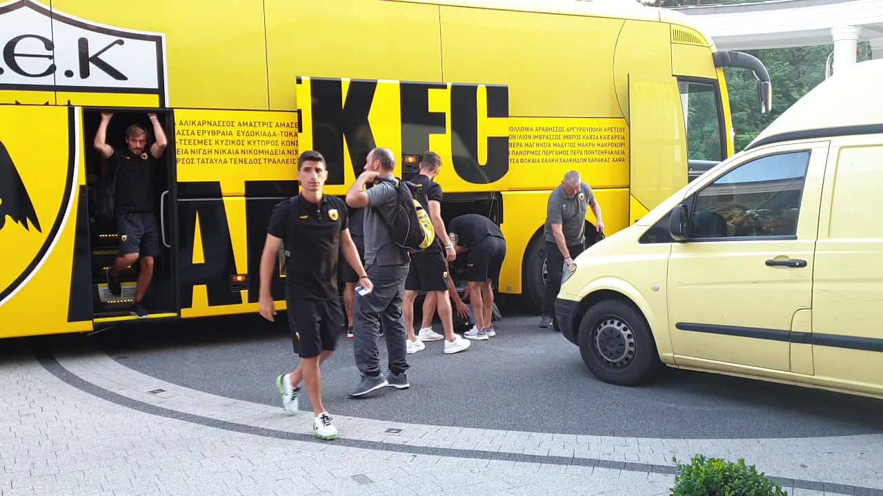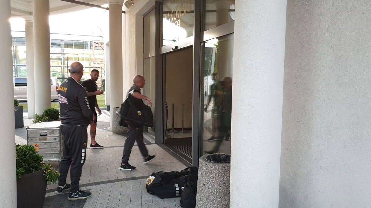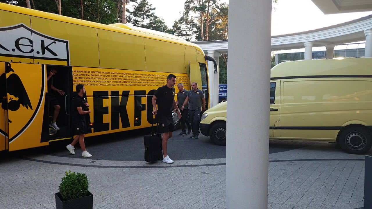 Έφτασε η ΑΕΚ στο ξενοδοχείο του προπονητικού κέντρου που εδώ και αρκετά χρόνια διανύει το βασικό στάδιο της προετοιμασίας της.