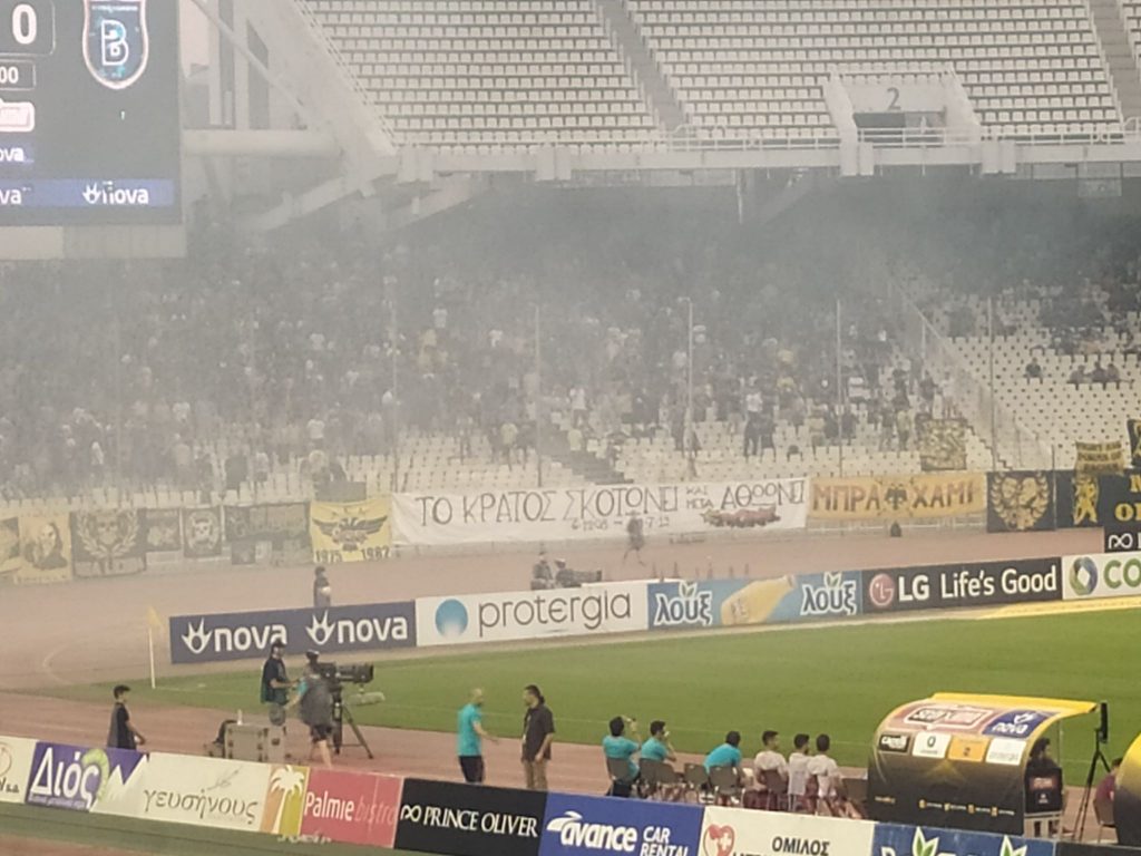 Ο αστυνομικός που σκότωσε το 2008 τον 15χρονο Αλέξανδρο Γρηγορόπουλο αποφυλακίστηκε χθες με τον νέο πειθαρχικό κώδικα και την ανοχή των δικαστών, με τους φιλάθλους της Ένωσης να κρεμούν πανό στο «κιτρινόμαυρο» πέταλο το οποίο γράφει: “Το κράτος σκοτώνει και μετά αθωώνει”.