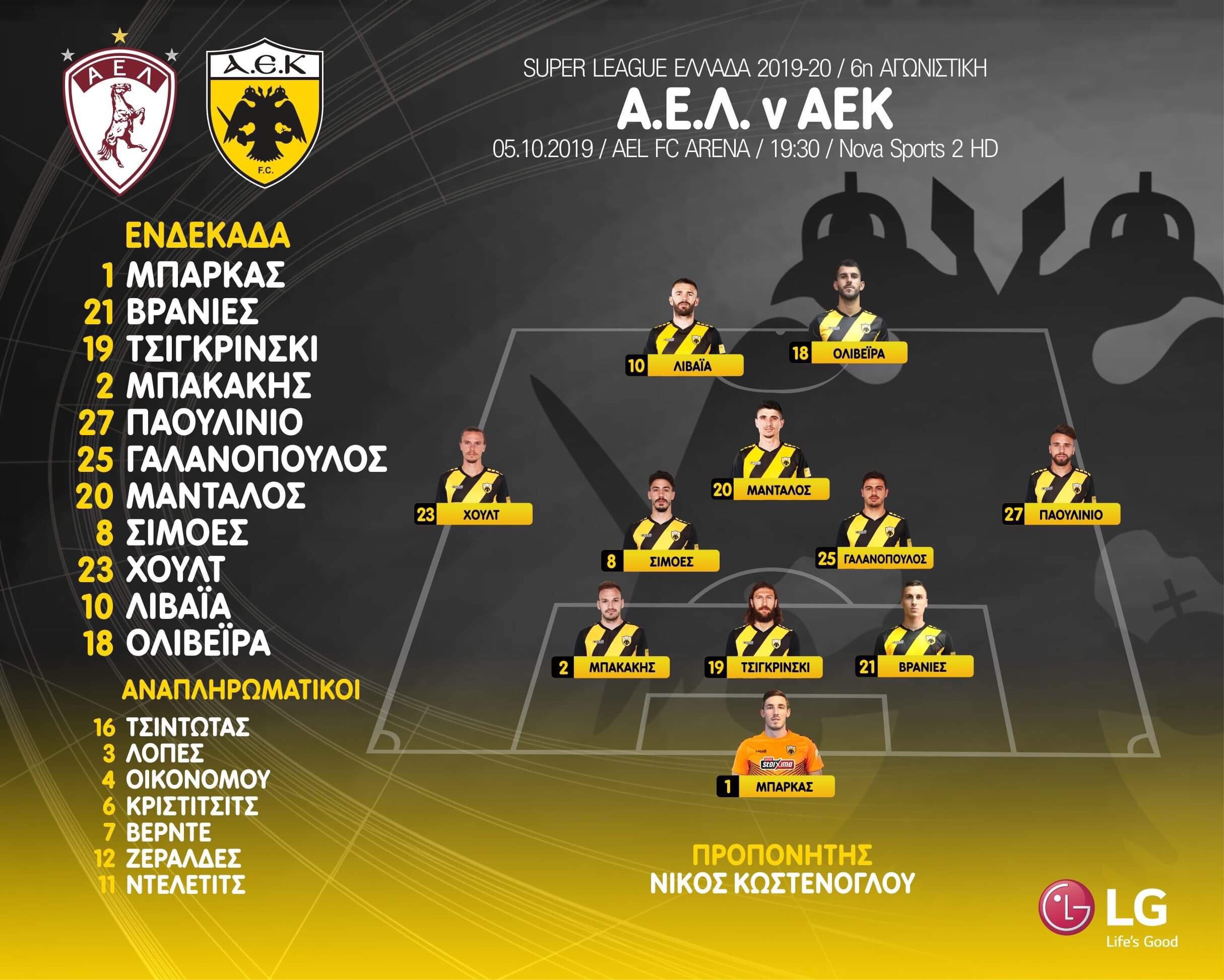 Αναλυτικά η σύνθεση της ΑΕΚ για το παιχνίδι με την ΑΕΛ στην Λάρισα
