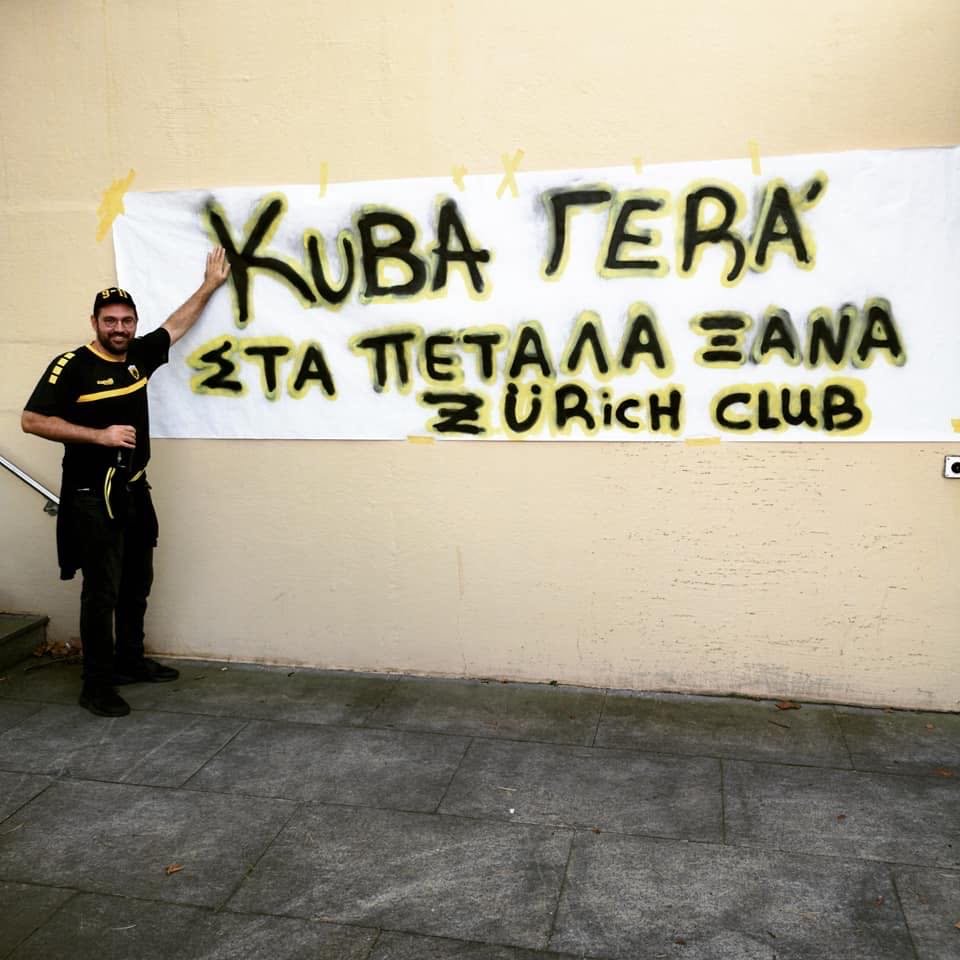 Σήμερα στα εγκαίνια του συνδέσμου όπου παρευρέθηκε και ο Όγκνιεν Βράνιες, ένα πανό έγραφε: “Κούμπα γερά, στα πέταλα ξανά” και το οποίο βεβαίως είχε την υπογραφή ΑΕK 21 Zürich.