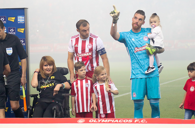Μαζί με την Τόνια – φίλαθλο του Ολυμπιακού – συνόδευσαν τις δυο ομάδες στην τελετή έναρξη του αγώνα και δημιούργησαν μία πολύ όμορφη ατμόσφαιρα πριν το μεγάλο ματς.