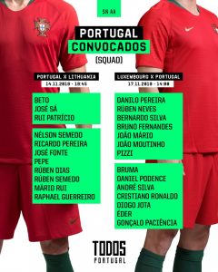 Τα 25 ονόματα της αποστολής για τα ματς των προκριματικών του Euro 2020 με Λιθουανία και Λουξεμβούργο στις 14 και 17 Νοεμβρίου έκανε γνωστά ο Φερνάντο Σάντος στην Εθνική Πορτογαλίας.