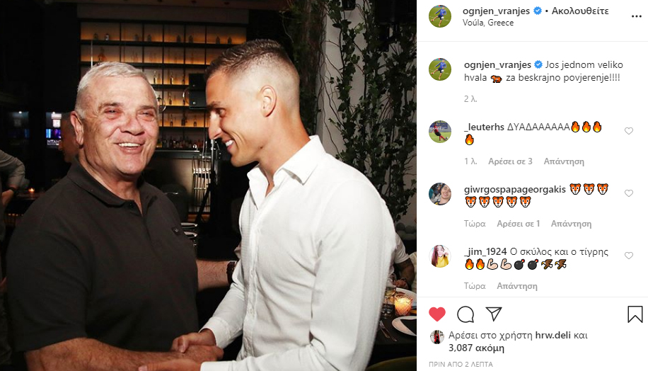 Η αγάπη μεταξύ Όγκνιεν και «Τίγρη» καλά κρατεί. Άλλωστε ο ίδιος ο Βόσνιος πάντα αναγνωρίζει στο πρόσωπο του Μελισσανίδη την υπομονή του ισχυρού άντρα της ΑΕΚ στα (πολλές φορές) δύσκολα προβλήματα που ανοίγει ο Βράνιες.