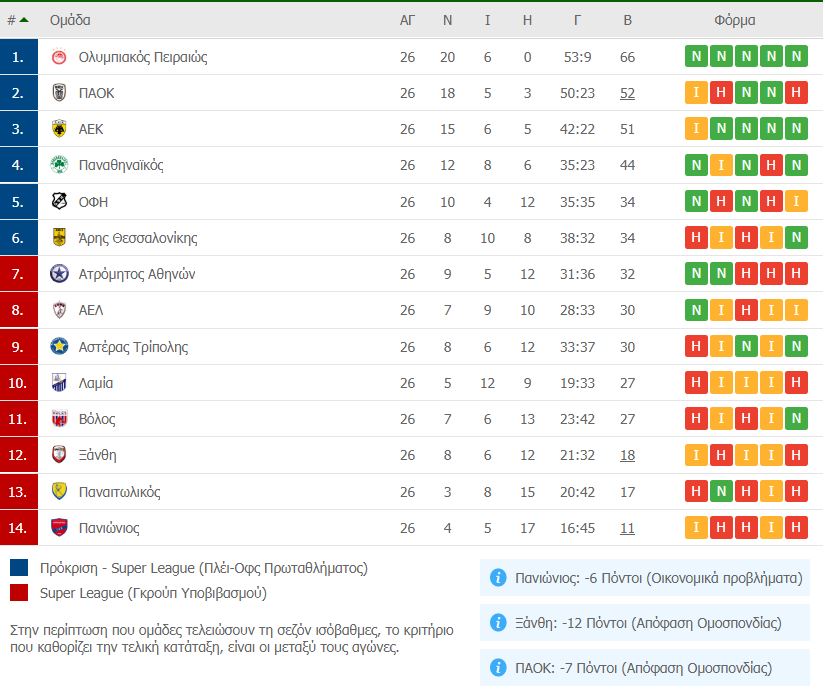 Δύσκολα μπορεί να αποφευχθεί πλέον η πρόωρη ολοκλήρωση του πρωταθλήματος της Super League 1, αποτελώντας το επικρατέστερο σενάριο. Επικύρωση της βαθμολογίας και… καλό καλοκαίρι.