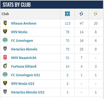 Επίσης έχει φορέσει κατά το παρελθόν κατά σειρά τις φανέλες των Φορτούνα Σιτάρντ (2008-09, 14 συμμετοχές – 4 γκολ), MVV(2009-10, 30 συμ. – 7 γκολ), Φέλντο (2010-13, 70 συμ. – 12 γκολ), Χέρακλες (2013-15, 64 συμ.-21 γκολ), Γκρόνιγκεν (2015-17, 56 συμ. – 13 γκολ).