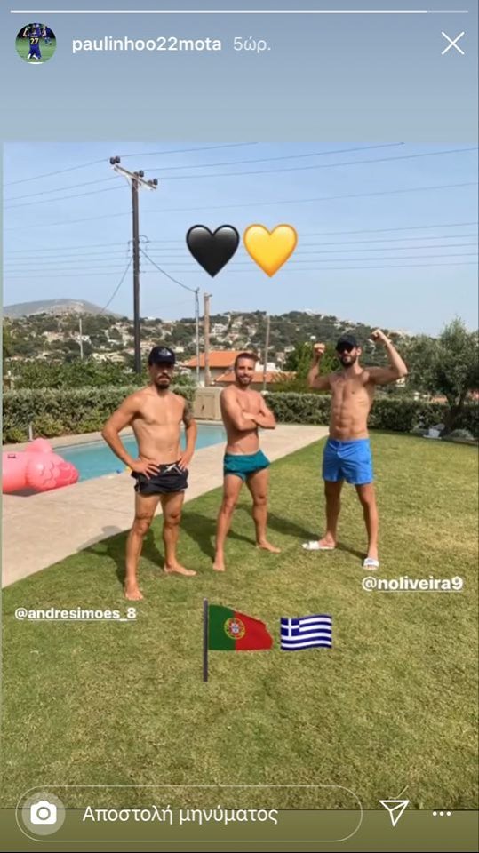 Ο αμυντικός της ΑΕΚ, ανέβασε μία φωτογραφία με τους τρεις τους μπροστά από μία εντυπωσιακή πισίνα να… ποζάρουν με μαγιό.