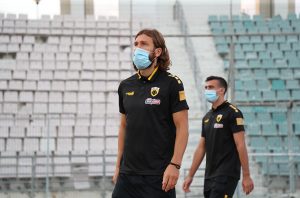 Λίγα λεπτά μετά την άφιξη της αποστολής στο Πανθεσσαλικό, οι ποδοσφαιριστές και οι άνθρωποι που συνοδεύουν την ομάδα, βγήκαν στον αγωνιστικό χώρο για την πρώτη αναγνωριστική βόλτα.