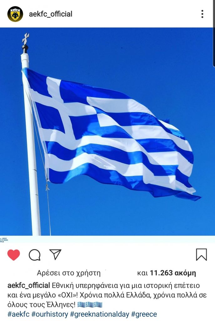 Η ΠΑΕ ΑΕΚ με αφορμή την σημερινή ημέρα αφιέρωσε μια δημοσίευση της, στα social media για την επέτειο του μεγάλου “ΟΧΙ”.