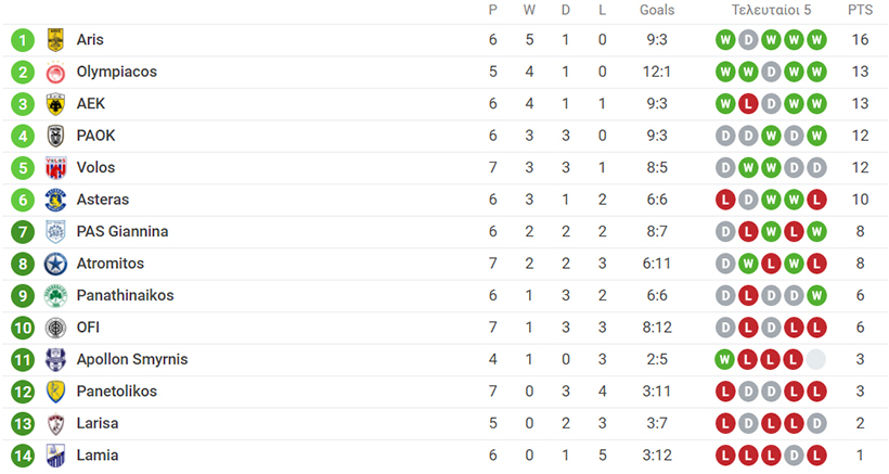 Δείτε πως διαμορφώνεται η βαθμολογία για την 7η αγωνιστική της Super League ΣΟΥΡΩΤΗ.