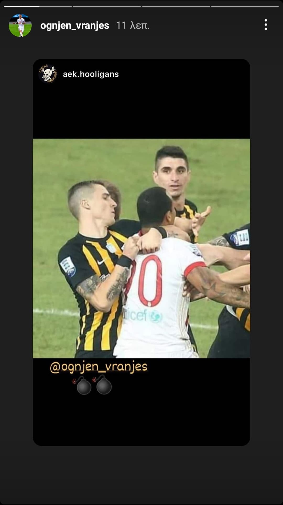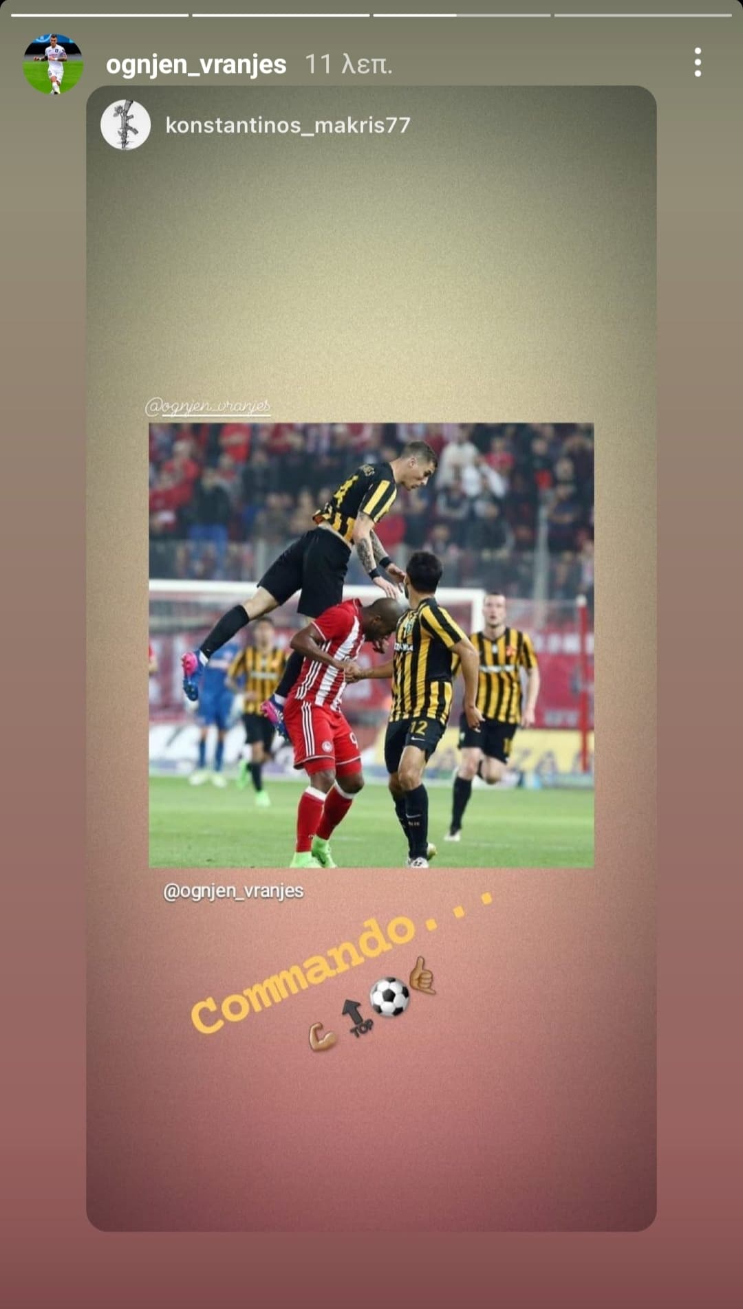Με την σειρά του ο 3οχρονος δεν έχασε την ευκαιρία να γεμίσει ξανά το προφίλ του στο instagram με κιτρινόμαυρες αναμνήσεις, αυτή την φορά με άρωμα ντέρμπι.