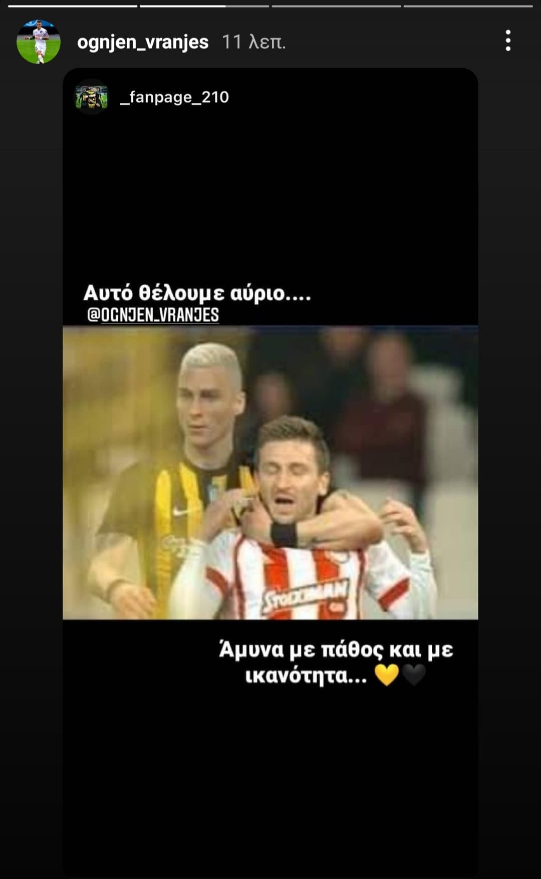 Ο Όγκιεν Βράνιες βρίσκεται πάντα στο επίκεντρο της συζήτησης στην κιτρινόμαυρη καθημερινότητας και οι φίλοι της ομάδας έχουν ήδη ξεκινήσει μία σειρά δημοσιεύσεων που ζητούν να δουν ξανά το ίδιο πάθος που έβγαζε ο «Όγκι» σε τέτοια ματς.